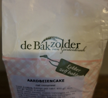 Ingrediënten: tarwebloem, gedroogde aardbeienstukjes, roompoeder, vanille, tarwezetmeel, sojabloem, rijsmiddel (E500.E450a), gedroogde glucosestroop, emulgator (E471), zout, aroma, verdikkingsmiddel