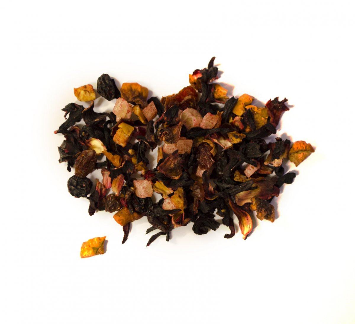 hibiscusbloesem, appel, rozenbottelschil, ananas (ananas, suiker, citreonzuur), papaja ( papaja suiker), druiven, aroma, kers, framboos, rode bessen en aardbei.