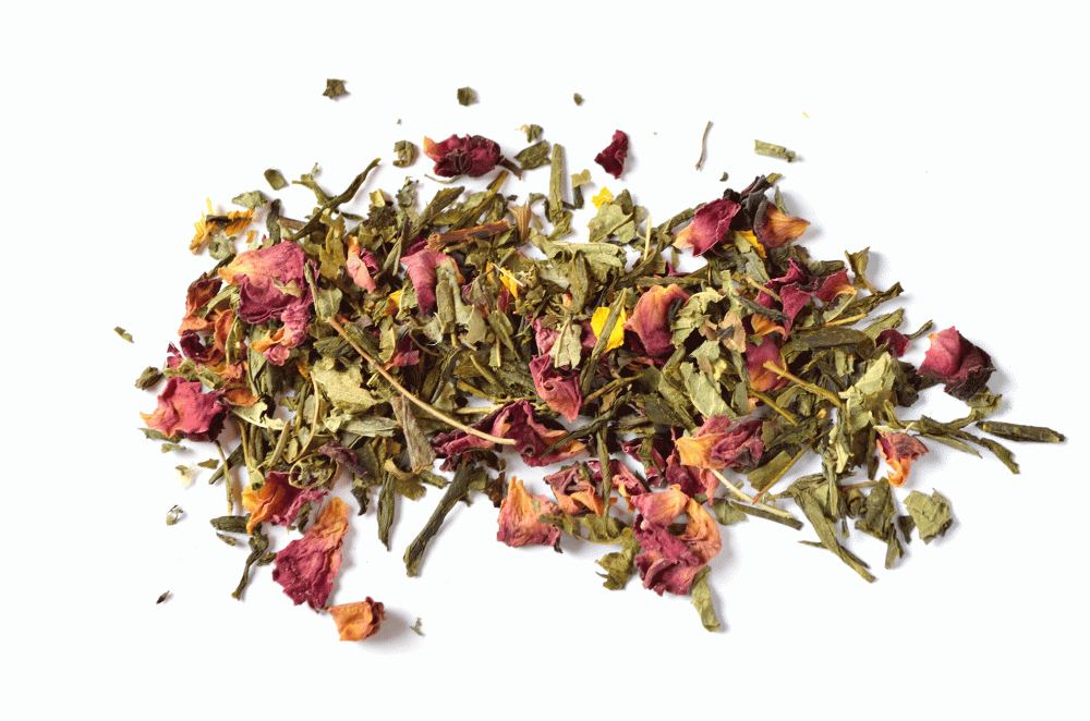 Groene thee, melisseblad, verbenablad, rozenbloesem, citroenmirthe, zonnebloembloesem en aroma.